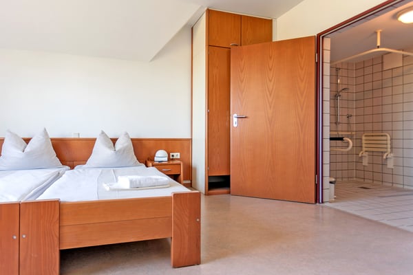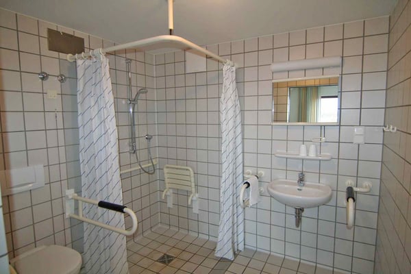 Für unsere Gäste im Rollstuhl stehen 6 Doppel-Zimmer zur Verfügung. Die dazugehörigen Bäder verfügen über genügend Bewegungsflächen, um bequem mit dem Rollstuhl die Dusche zu befahren. Es gibt